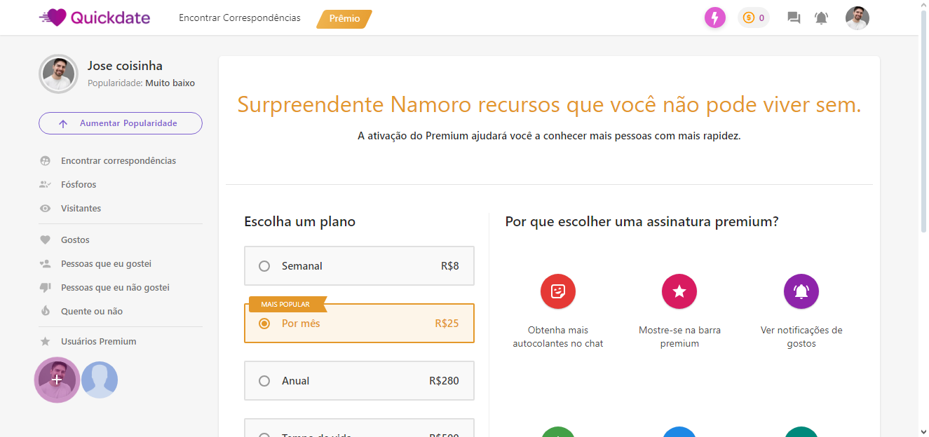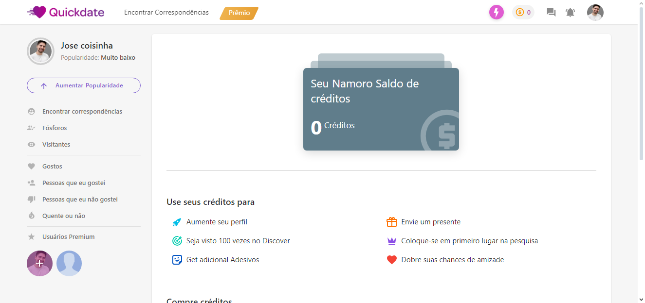 – O usuário deve comprar crédito para usá-lo em mensagens, presentes, curtidas. etc…